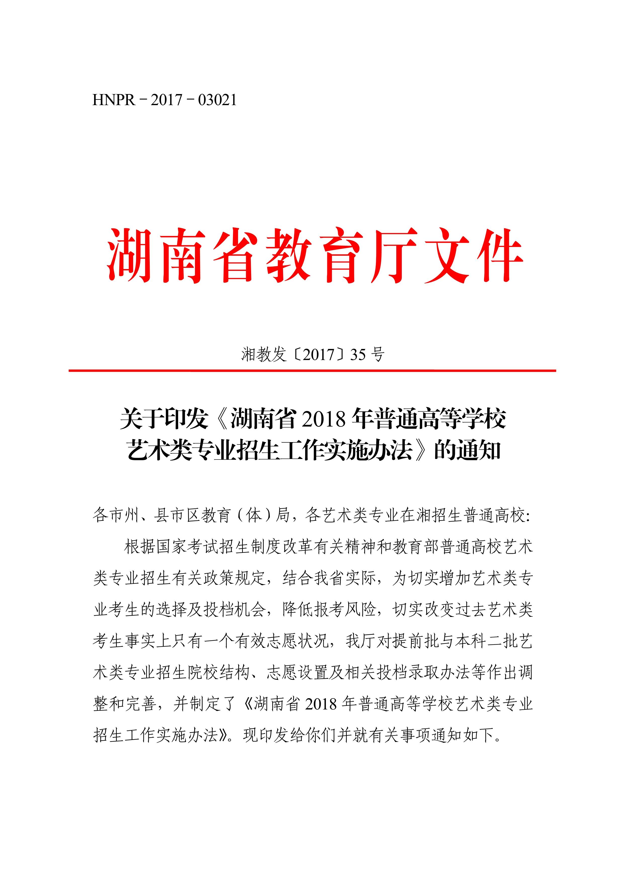 近日,湖南省教育厅发布了明年艺术类高考招生的实施办法。这是一份信息量十分丰富的文件:相比往年,在艺考招生投档、录取规则等方面都有重要的变动和改进,将直接影响到考生的志愿填报方式。虽然规则和办法变得更加人性化、合理化,但广大考生必须适应规则,才能取得更好的成效。因此,认真研读文件是十分必要的。现将原文件全文刊载如下: